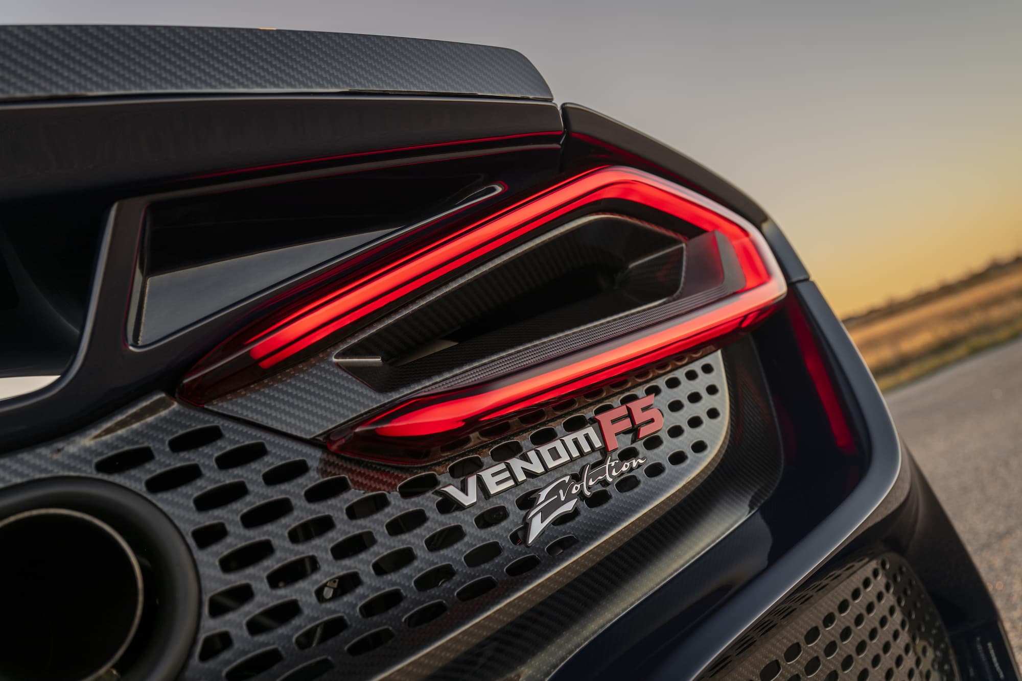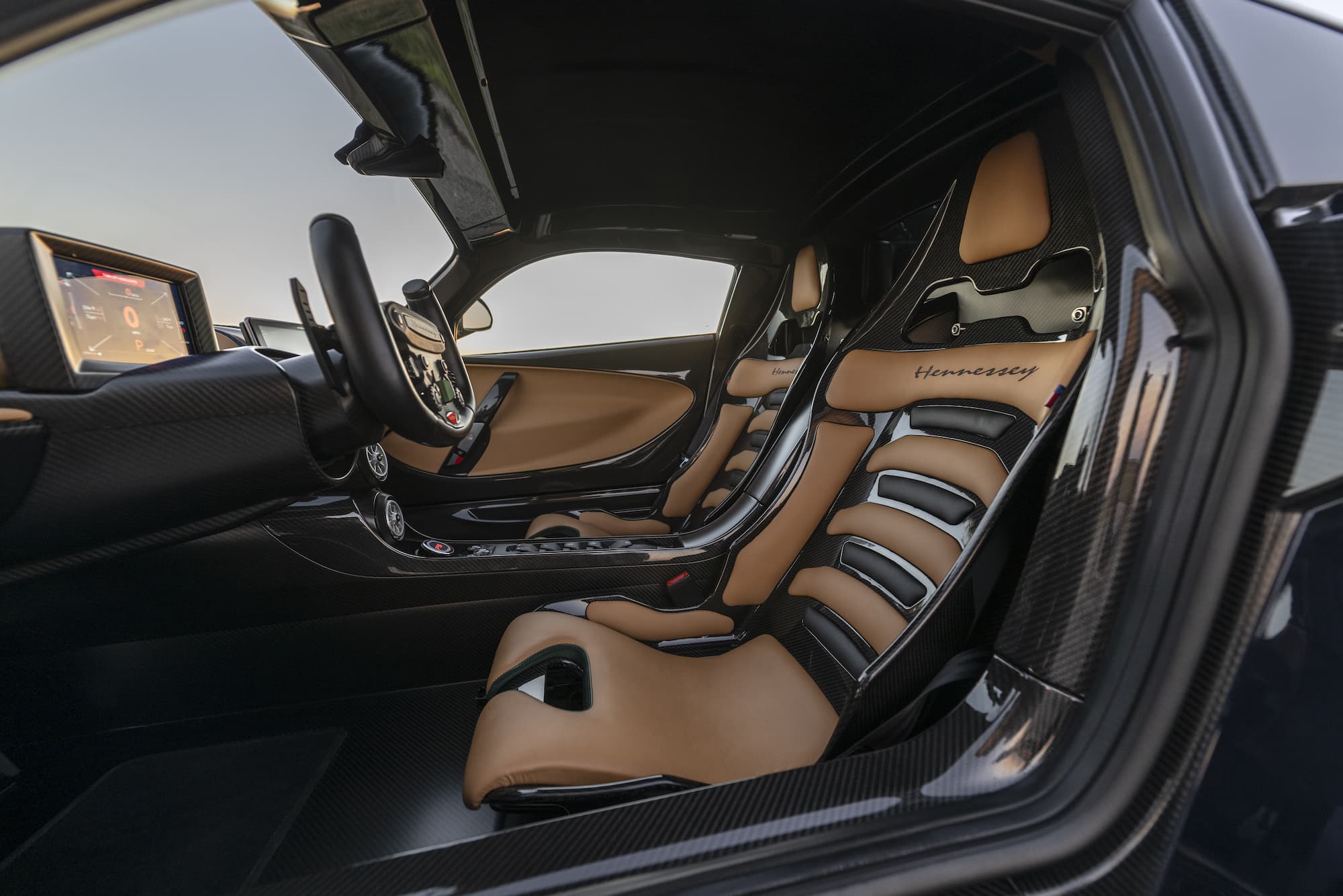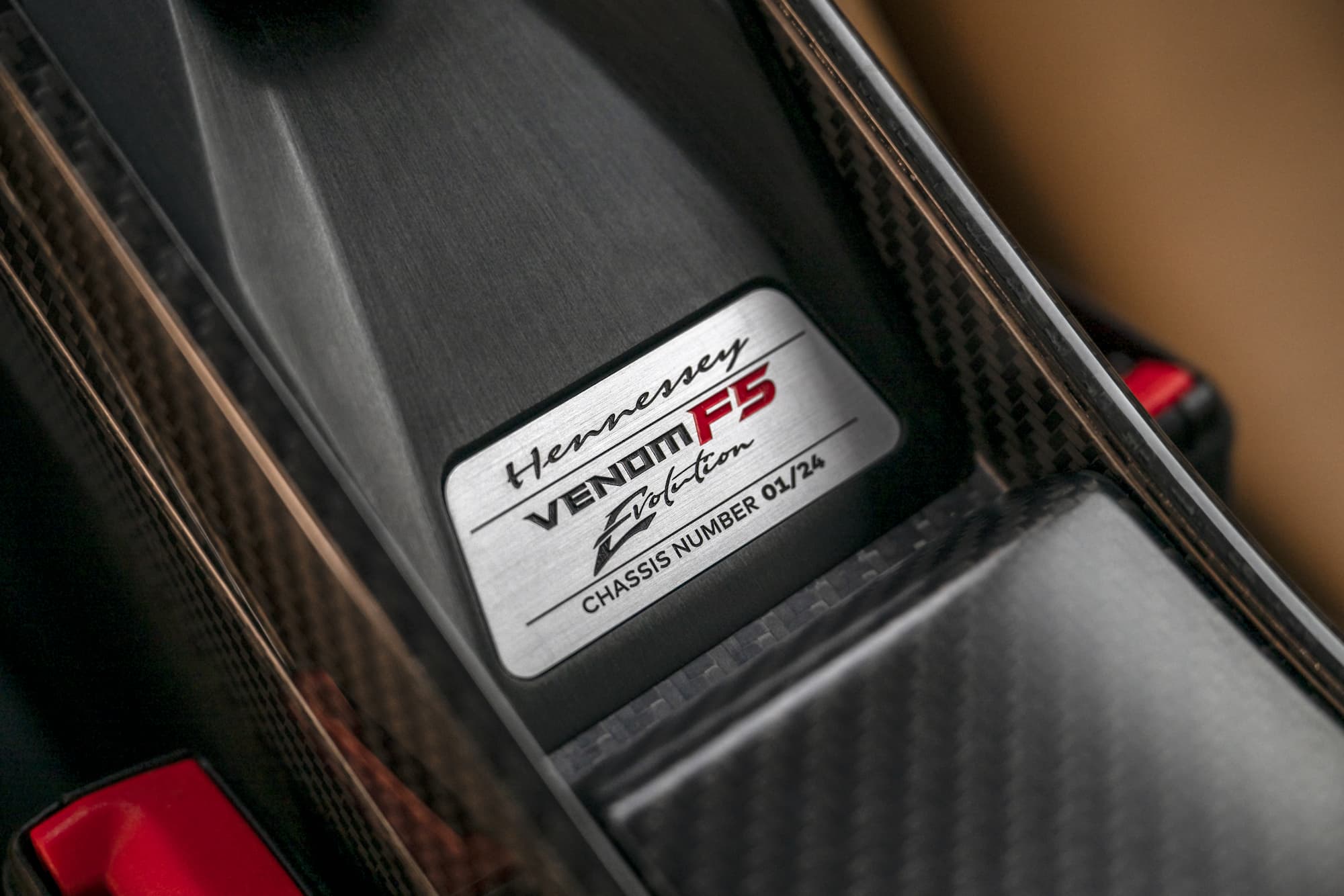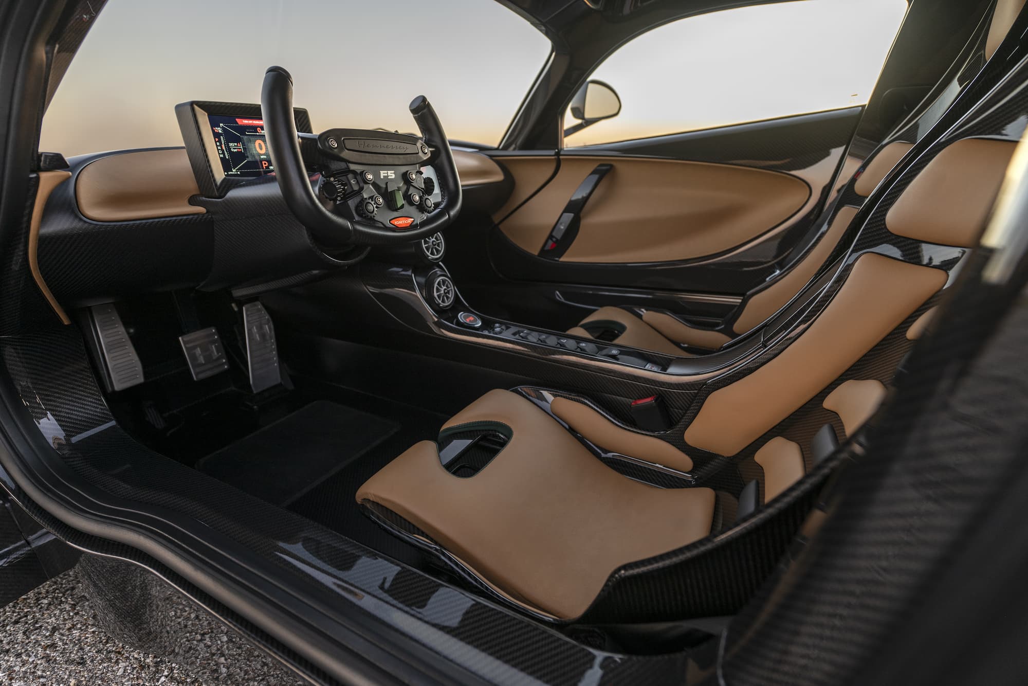 The bespoke Speed Devil Blue Venom F5 coupe features a Butterscotch Tan and Black-accented interior. This example of the F5 sports polished silver wheels and visible carbon fiber accents, and it has received the ‘Evolution’ upgrade.