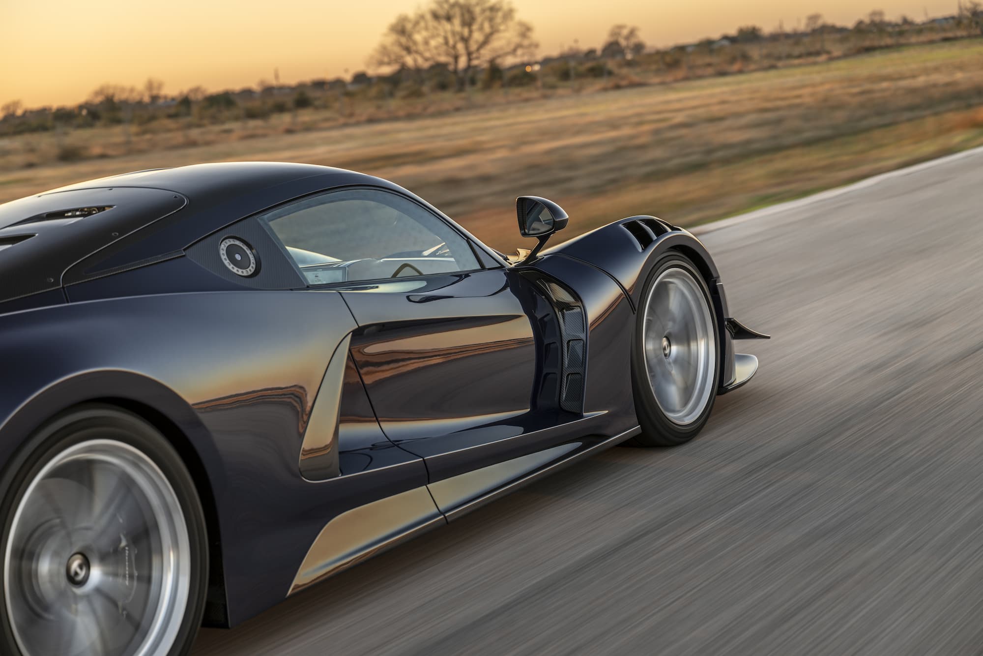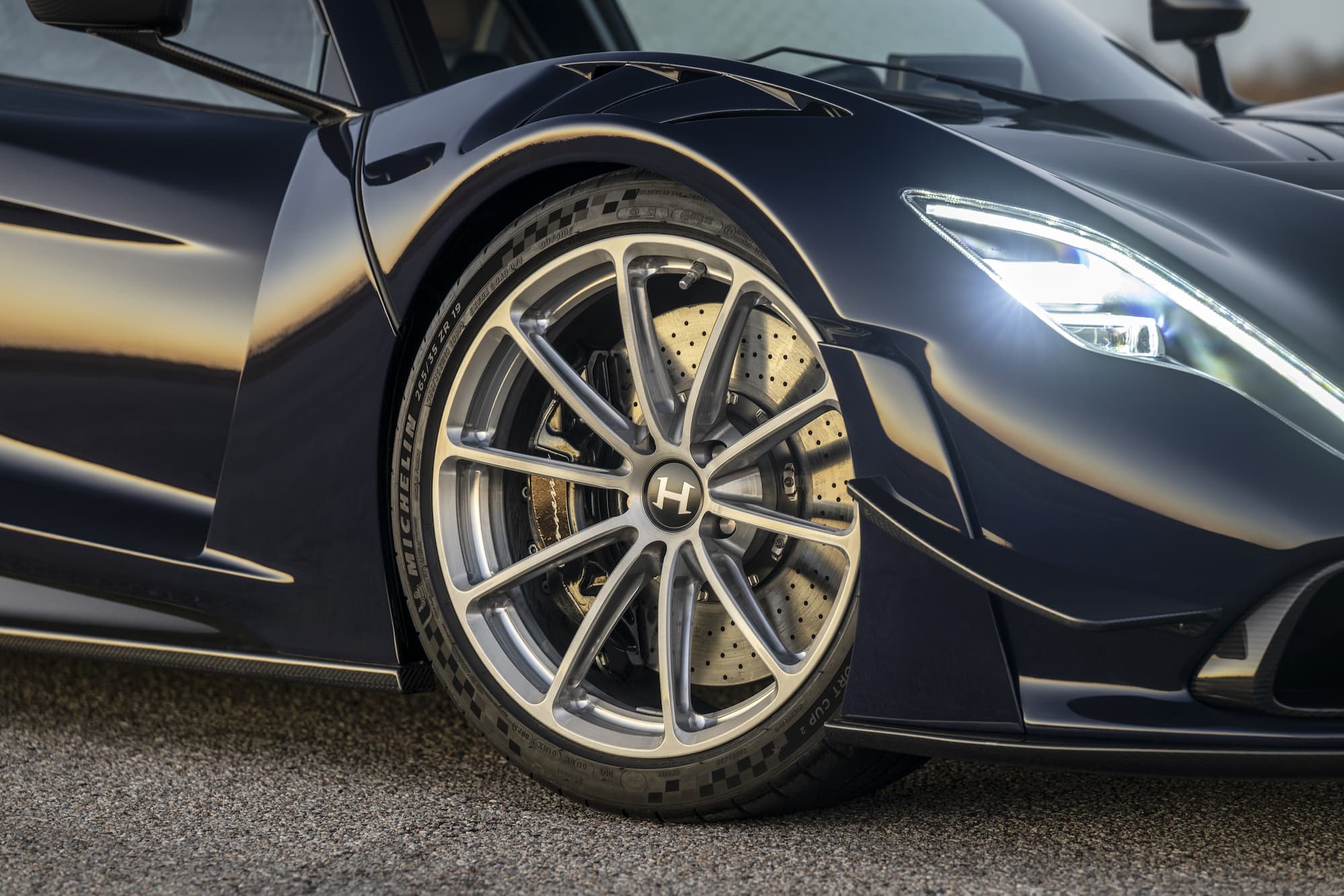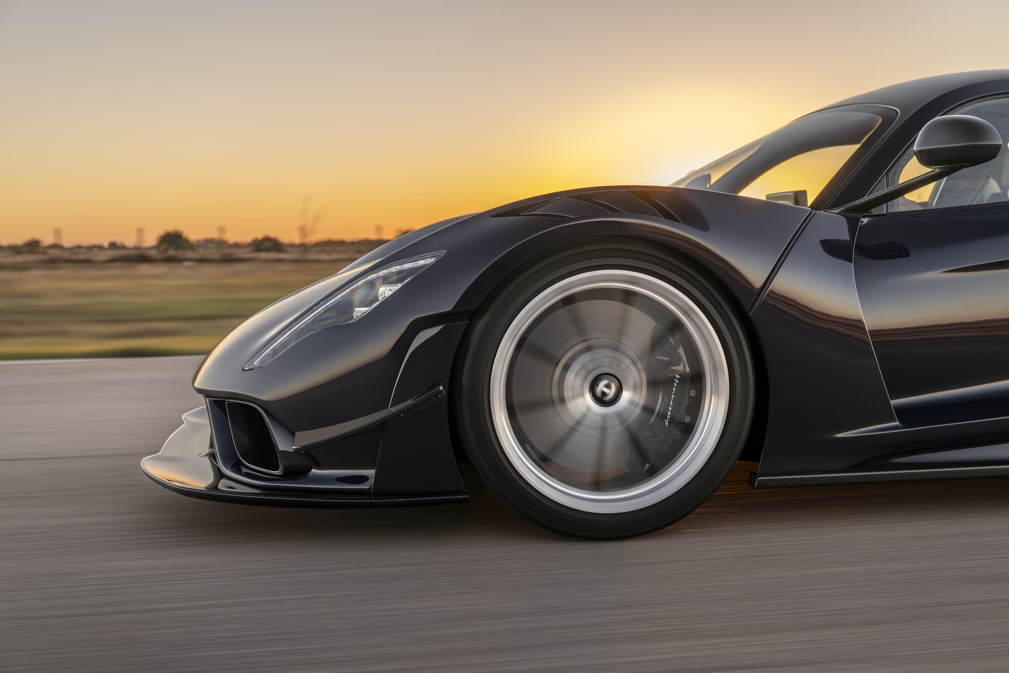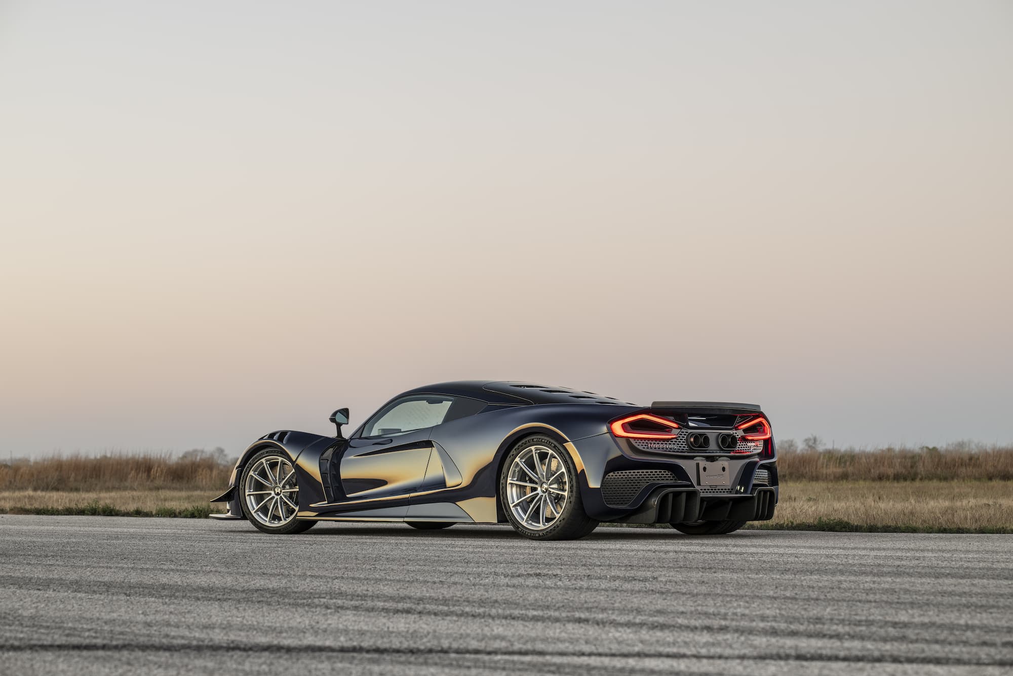 The bespoke Speed Devil Blue Venom F5 coupe features a Butterscotch Tan and Black-accented interior. This example of the F5 sports polished silver wheels and visible carbon fiber accents, and it has received the ‘Evolution’ upgrade.